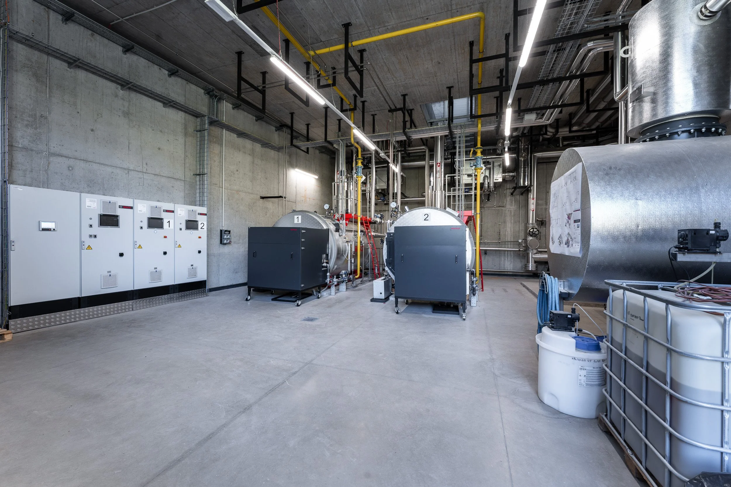 Lieferung von zwei Dampfkesseln mit einer Gesamtleistung von 6.000 kg/h Dampf sowie deren Einbindung in die bestehende Anlagentechnik während des laufenden Betriebs.